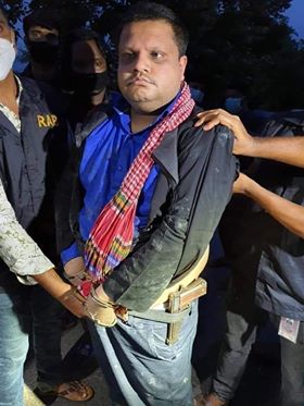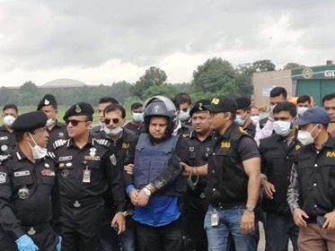 র‌্যাবের হাতে গ্রেপ্তার রিজেন্ট হাসপাতাল মামলার প্রধান পলাতক আসামি ও রিজেন্ট গ্রুপের চেয়ারম্যান মো. সাহেদ (হাতকড়া লাগানো)। ছবি: র‌্যাবের সৌজন্যে।