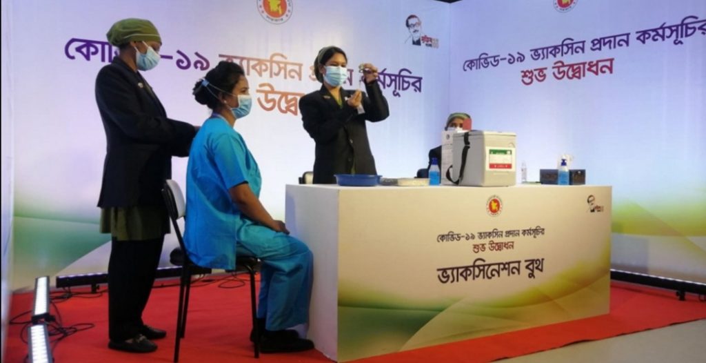 রাজধানীর কুর্মিটোলা জেনারেল হাসপাতালের সিনিয়র স্টাফ নার্স রুনু ভেরোনিকা কোস্তা বাংলাদেশের করোনা ভাইরাসের প্রথম টিকা নিয়েছেন। আজ বুধবার বিকেল ৩ঃ ৩০ মিনিটে অনলাইন ভার্চুয়ালে যুক্ত হয়ে টিকা প্রয়োগ কার্যক্রম শুভ উদ্বোধন করেন গনপ্রজাতন্ত্রী বাংলাদেশ সরকারের মাননীয় প্রধানমন্ত্রী দেশরত্ন জননেত্রী শেখ হাসিনা। তার পর পরই সিয়াম ইনস্টিটিউটের উৎপাদিত অক্সফোর্ড অ্যাস্টাজেনেকার টিকার প্রথম ডোজ নেন রুনু ভেরোনিকা কোস্তা। টিকা নেওয়ার এই দৃশ্য প্রত্যক্ষ করেন প্রধানমন্ত্রী শেখ হাসিনা। এই সময় প্রধানমন্ত্রী শেখ হাসিনা রুনু কোস্তাকে সাহস ও উৎসাহ যোগান। টিকা নেওয়ার আগ মুহূর্তে রুনু কোস্তাকে উদ্দেশ্য করে প্রধানমন্ত্রী বলেন, ভয় পাচ্ছ নাতো,