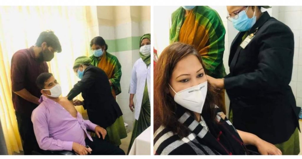 প্রধানমন্ত্রীর বিশেষ সহকারী মশিউর রহমান হুমায়ূন, প্রধানমন্ত্রীর প্রটোকল অফিসার শামিম মুশফিক, প্রধানমন্ত্রীর সহকারী একান্ত সচিব-২ গাজী হাফিজুর রহমান লিকু বেলা আড়াইটার দিকে রাজধানীর নিউরোসায়েন্স হাসপাতালে টিকা নেন। মশিউর রহমান হুমায়ূন বলেন, “অত্যন্ত উৎসব মুখর পরিবেশে আজ ভ্যাকসিন গ্রহণ করলাম। কোনো ধরনের পার্শ্বপ্রতিক্রিয়া নেই।”