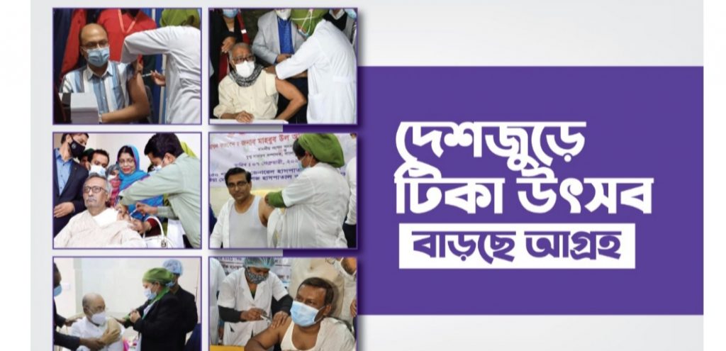 আশা করি সকলেই পর্যায়ক্রমে এই করোনা ভাইরাসের টিকা নিতে পারবেন, সরকার এই বিষয়ে যথেষ্ট সচেতন রয়েছেন ও টিকাদান কর্মসূচিতে যেসমস্ত সেবাদান কেন্দ্র নিয়োজিত আছেন তাদের সকলকেই মানবিক আচরণ ও সঠিক সেবাদানের নির্দেশনা দিয়েছেন। সব মিলিয়ে তবু্ও দিনটি ছিল উৎসব মূখর। বঙ্গবন্ধুর কন্যা মানবতার জননেত্রী শেখ হাসিনার সাহস উদ্দীপনায় এ যেনো আধার কাটিয়ে আলোর পথের যাত্রা।