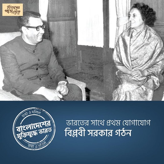 কলকাতার THE STATESMAN ১৩ এপ্রিল খবর ছাপে 6-Member Cabinet with Mujib as President Formed-A six-member Cabinet of the sovereign Democratic Republic of Bangladesh was formed somewhere in East Bengal today. According to sources close to the Awami League, Sheikh Mujibur Rahman was named President while Syed Nazrul Islam and Mr. Tajuddin Ahmed were chosen Vice-President and Prime Minister, respectively. The Government of Bangladesh came into being following protracted deliberation at a meeting of the National Assembly members and the top Awami League leaders held somewhere in Bangladesh.